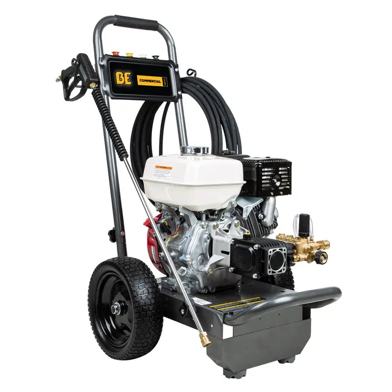 3,800 PSI 3.5 GPM gas pressure washer powered by Honda GX270 engine with AR Triplex pump, ideal for heavy-duty cleaning of driveways, decks, siding, and commercial applications